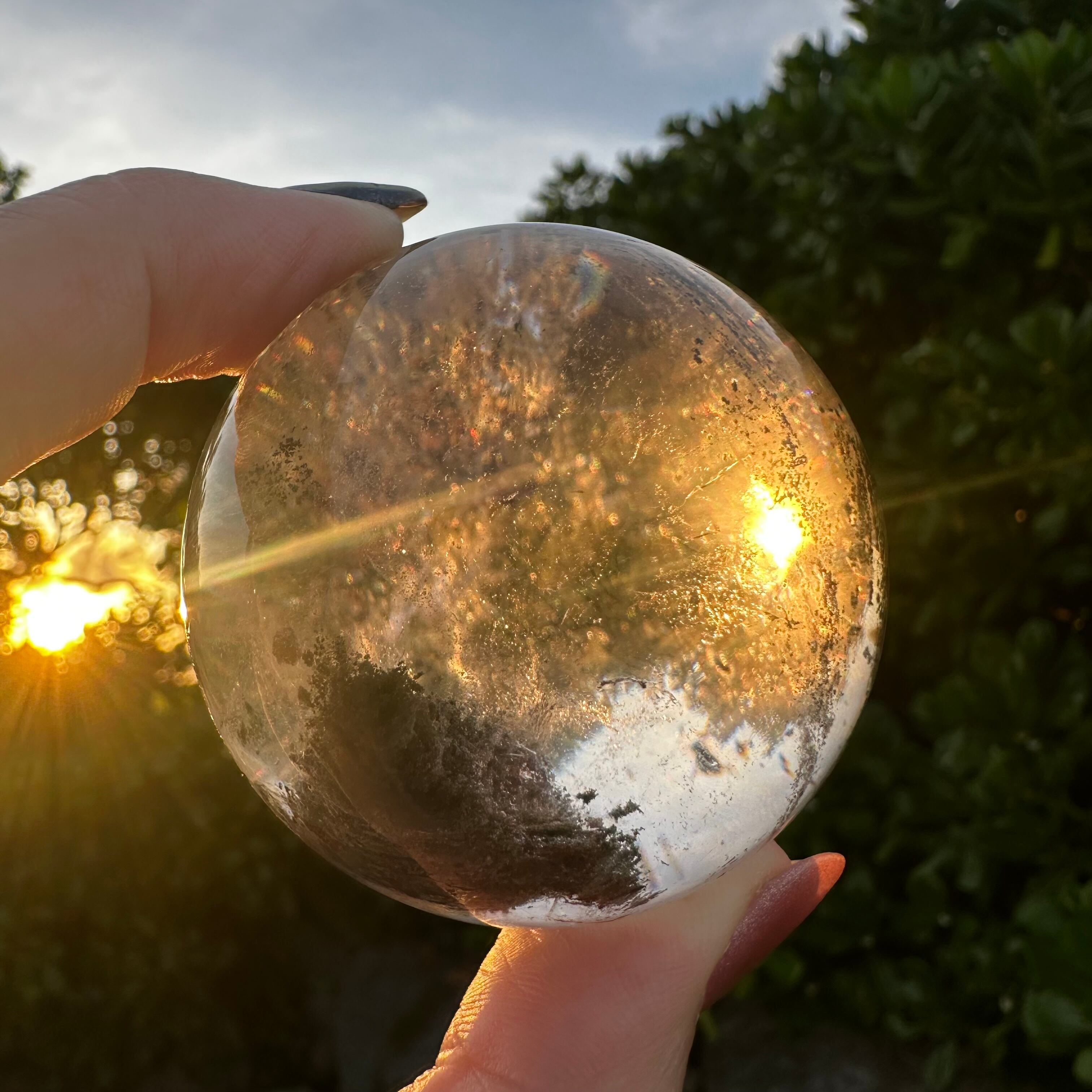 力強い夏至の太陽の光を浴びエネルギーをたっぷり吸収した内側を覗き込むとキラキラと輝きや、夕陽を映し込む姿は幻想的な姿はスフィアならではの美しさです☀️
