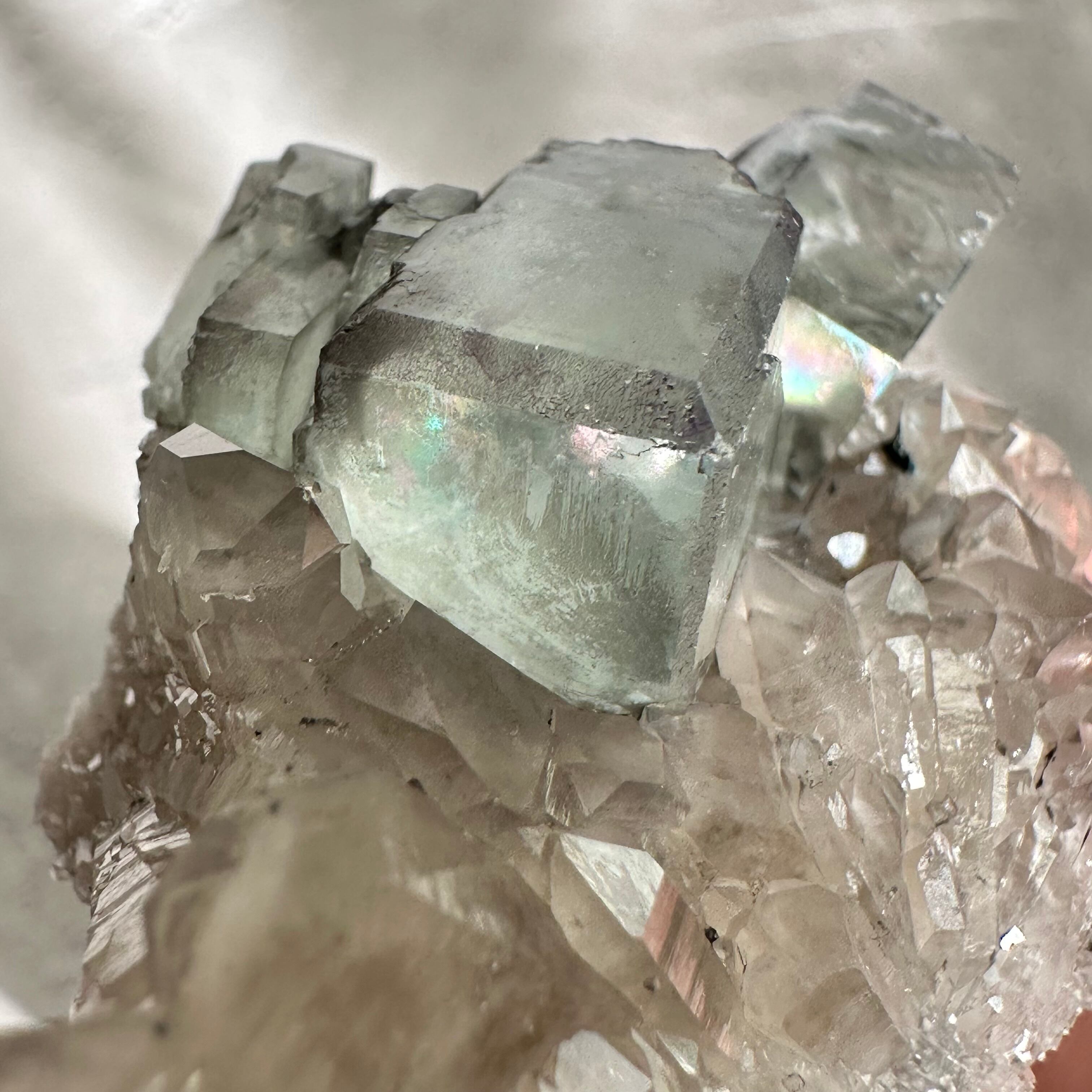 湖南省産の虹たっぷりのグリーンフローライトとスモーキークォーツが共生した原石さん✨