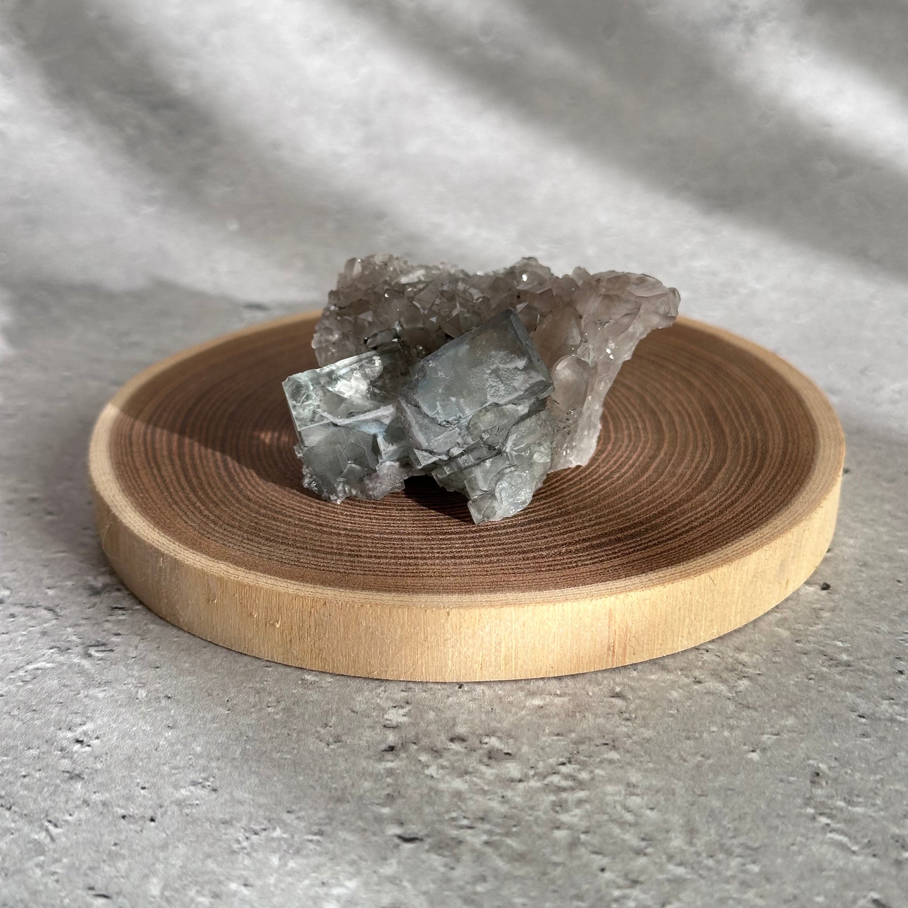 よく見ると複雑に成長しているスモーキークォーツと、白く氷の世界を連想させるような内包物や黒を纏った部分もある個性的なフローライトが作り出す唯一無二の世界が広がります✨