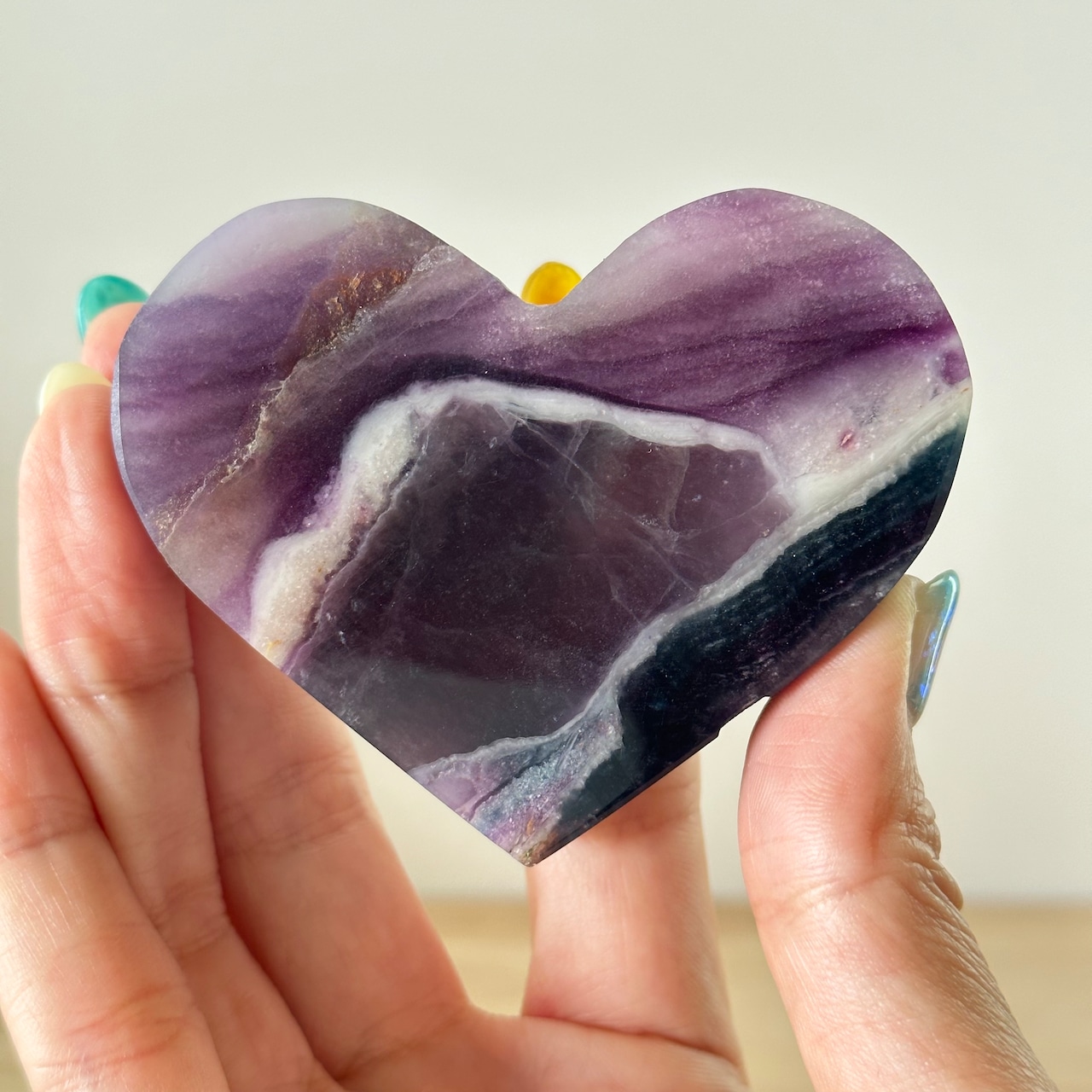 ミルキーな色合いが可愛らしい、希少なシルキー(絹のような) フローライトのハートを入荷いたしたしました!