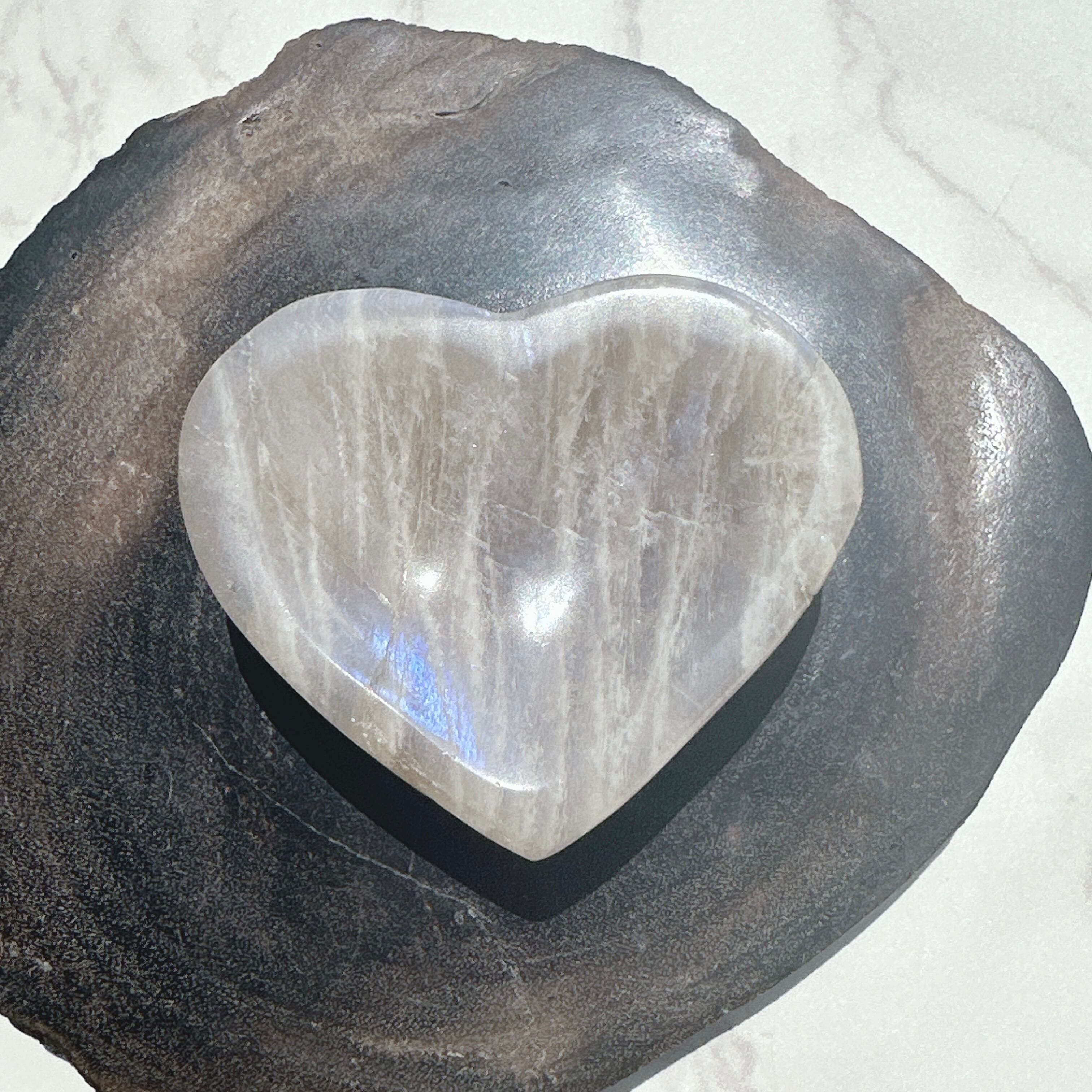 ブルーシラーの輝きが全体的に見られるハート型の小皿。