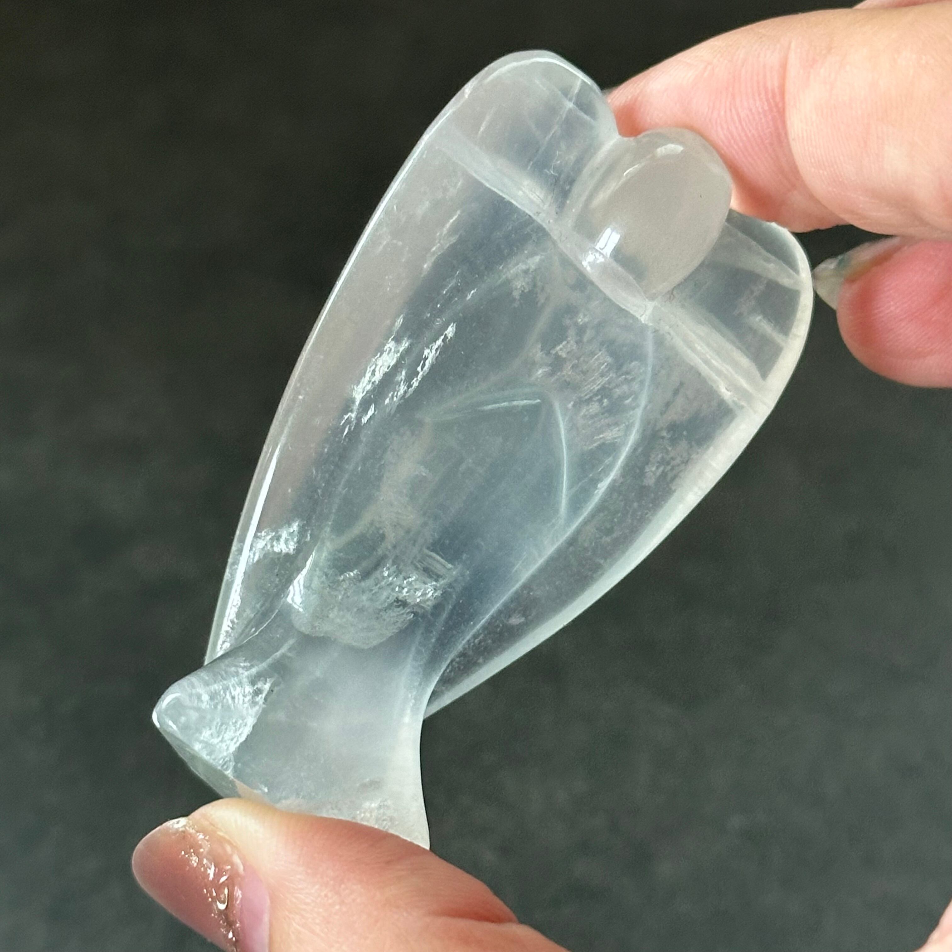 淡いグリーンに薄っすらミルキーピンクが混ざり合った、とても優しい雰囲気のイットリウムフローライトの天使さんです。